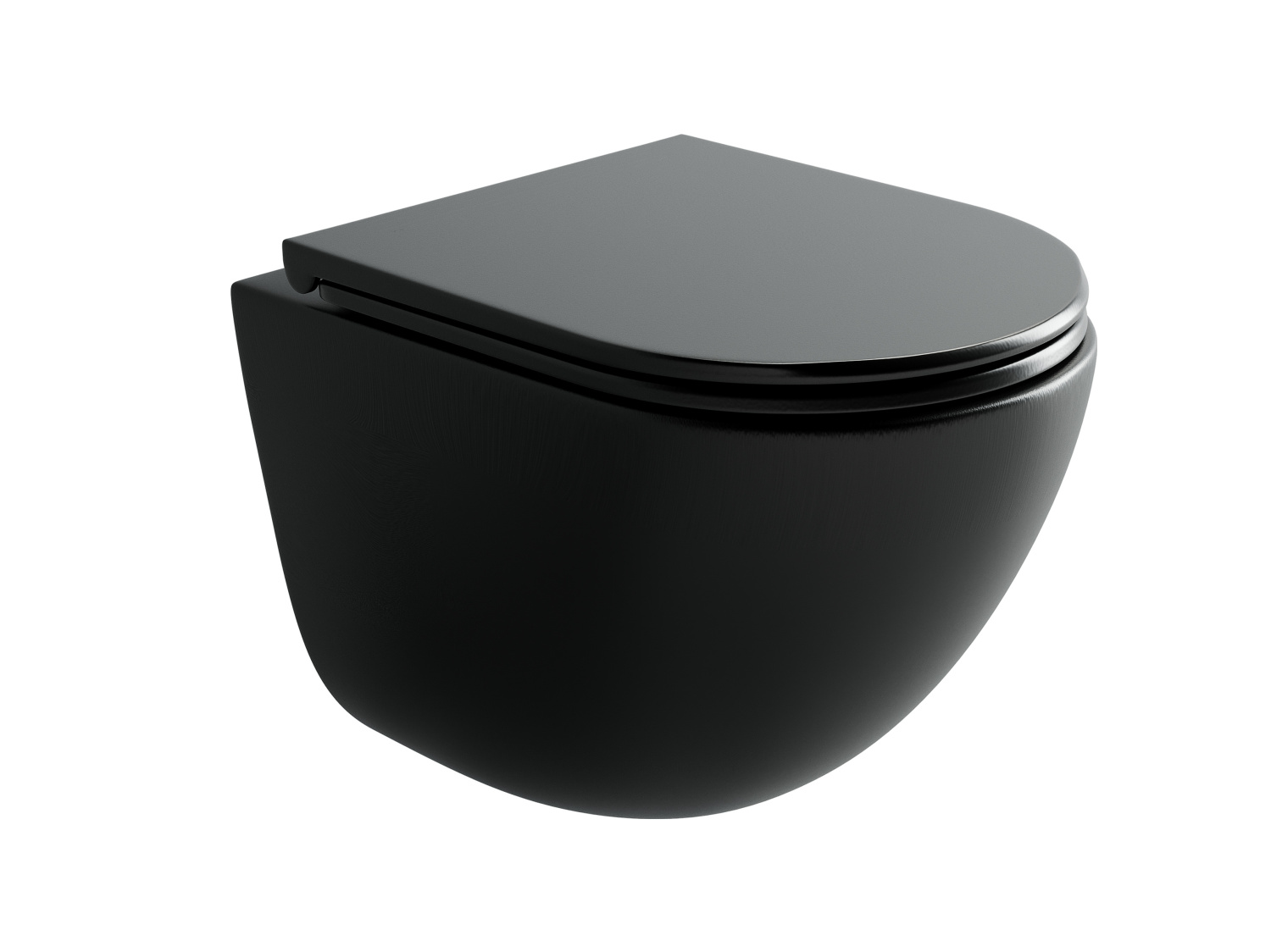 Ceramica Nova Uno Унитаз подвесной безободковый с крышкой, механизм SoftClose, цвет: черный матовый CN11001MB