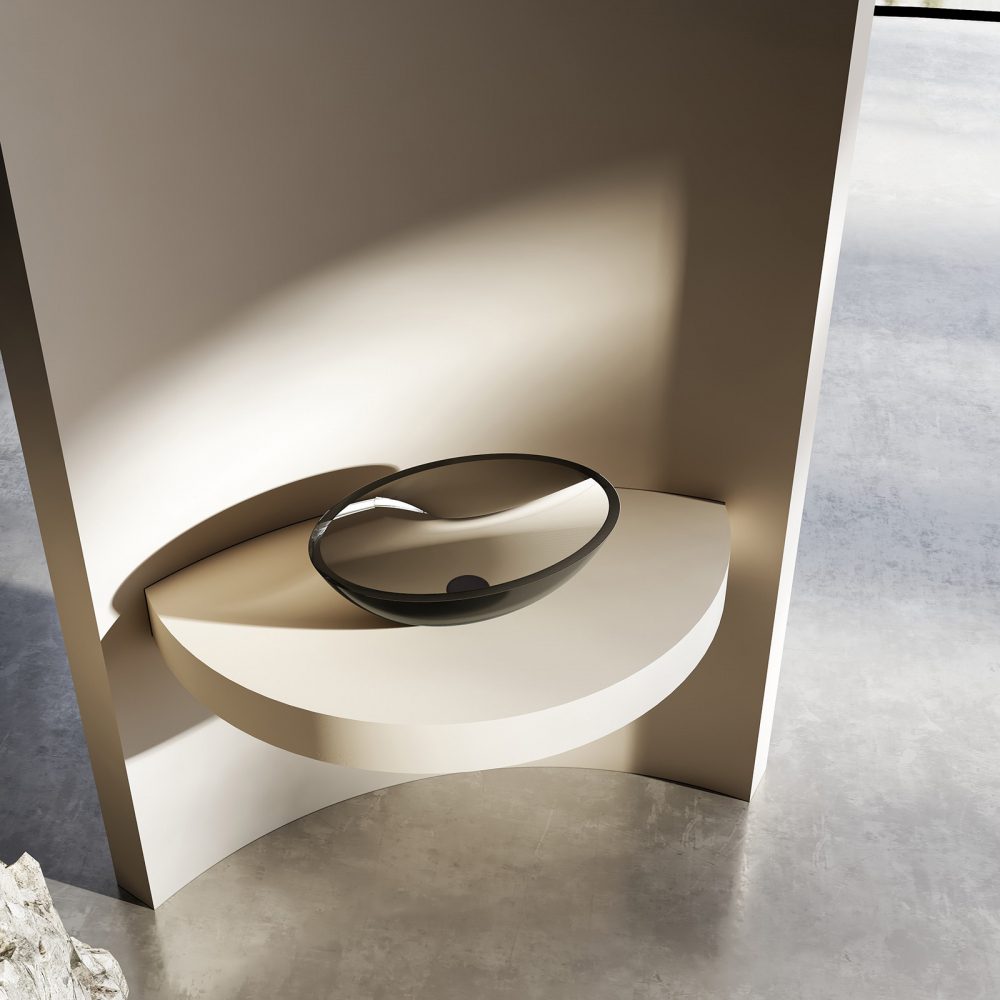 Abber Kristall Раковина накладная прозрачная овальная 50x35x15h см, цвет: черный AT2802Onyx и другие сантехнические изделия бренда характеризует надежность, высокое качество и продолжительный срок службы. Изделие в стилистике минимализм впечатляюще будет смотреться в различных цветовых решениях помещения.