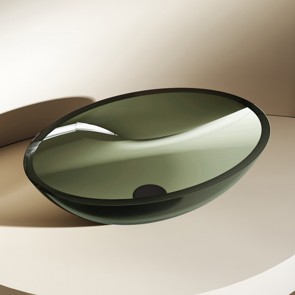 Abber Kristall Раковина накладная прозрачная овальная 50x35x15h см, цвет: оливковый AT2802Vesuvian и другие сантехнические изделия бренда характеризует надежность, высокое качество и продолжительный срок службы. Изделие в стилистике минимализм впечатляюще будет смотреться в различных цветовых решениях помещения.