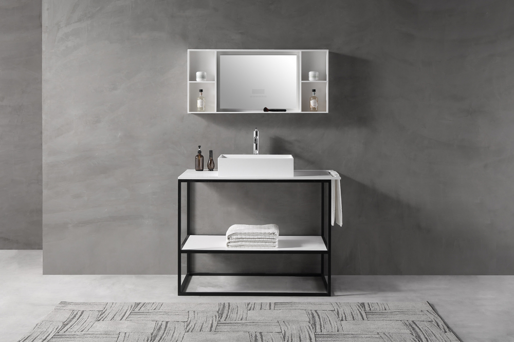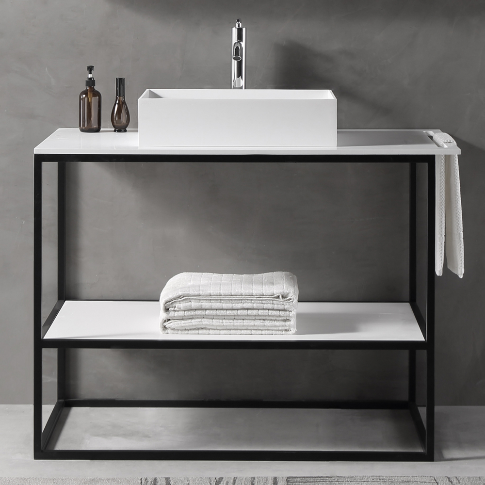 Abber Stein Консоль под раковину напольная 106x55x78h см, цвет: черный AS2631 и другие сантехнические изделия бренда характеризует надежность, высокое качество и продолжительный срок службы. Изделие в стилистике минимализм впечатляюще будет смотреться в различных цветовых решениях помещения.