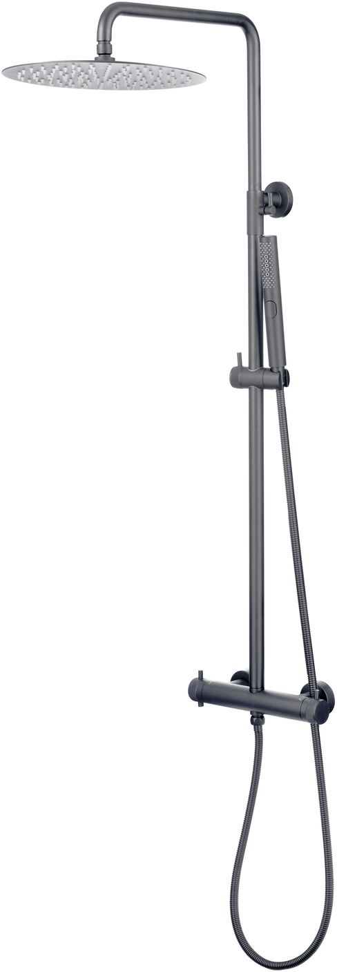 Allen Brau Fantasy Душевая стойка: термостат, ручной и верхний душ, шланг 150 см, цвет: графит браш 5.11001-MG и другие сантехнические изделия бренда характеризует надежность, высокое качество и продолжительный срок службы. Изделие в стилистике лофт впечатляюще будет смотреться в различных цветовых решениях помещения.