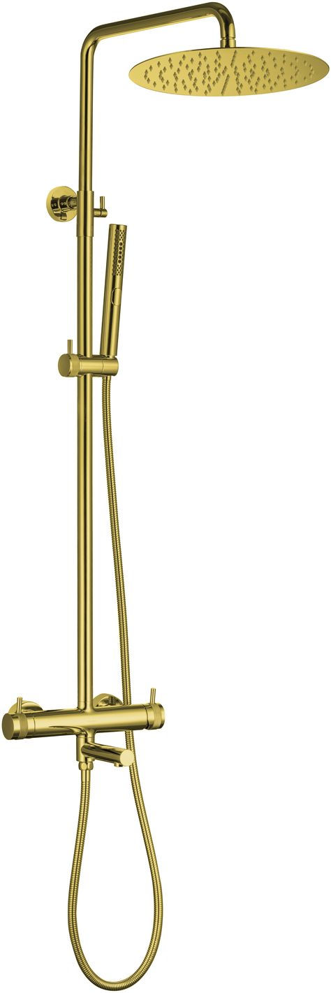 Allen Brau Priority Душевая стойка: ручной душ, шланг, верхний душ 30 см, цвет: золото брашированное 5.31A10-GB и другие сантехнические изделия бренда характеризует надежность, высокое качество и продолжительный срок службы. Изделие в стилистике лофт впечатляюще будет смотреться в различных цветовых решениях помещения.