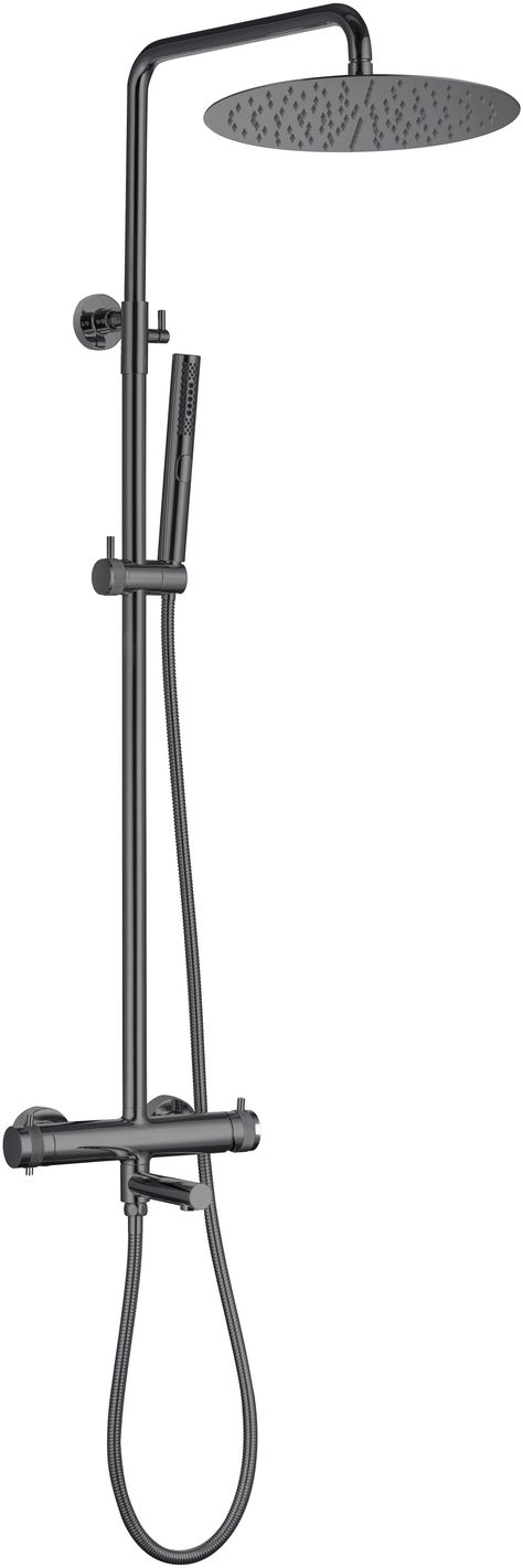 Allen Brau Priority Душевая стойка: термостат, руч. душ, шланг, верхний душ 30 см, цвет: графит браш 5.31T10-MG и другие сантехнические изделия бренда характеризует надежность, высокое качество и продолжительный срок службы. Изделие в стилистике лофт впечатляюще будет смотреться в различных цветовых решениях помещения.
