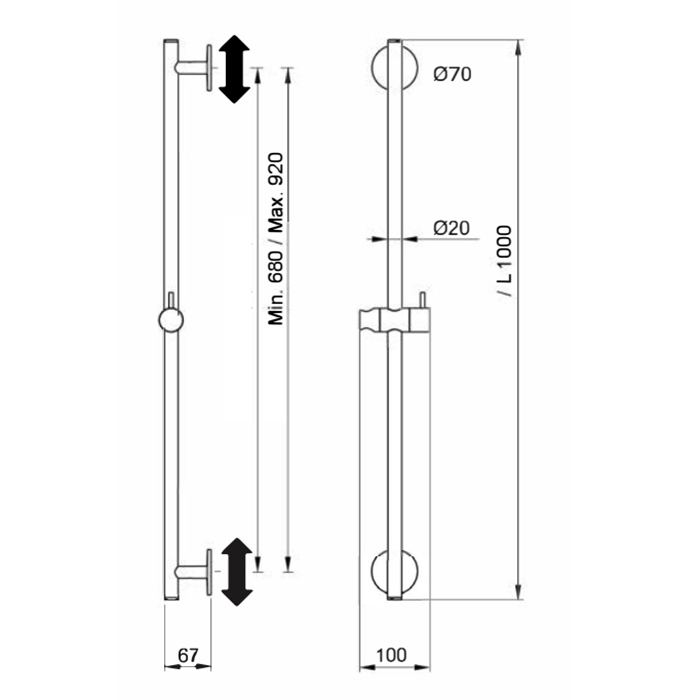 Almar Posh Душевой гарнитур: ручная лейка Posh, шланг 150 см, штанга 100 см, цвет: chrome E144065.CR