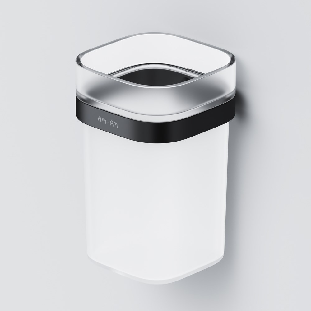 Am.Pm Func Стакан подвесной, стеклянный, цвет: черный матовый A8F34322 и другие сантехнические изделия бренда характеризует надежность, высокое качество и продолжительный срок службы. Изделие в стилистике минимализм впечатляюще будет смотреться в различных цветовых решениях помещения.