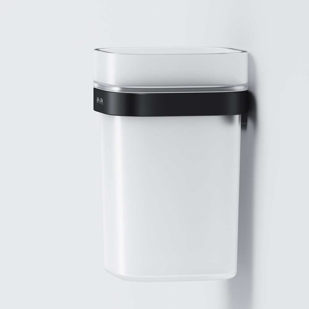 Для ценителей функционального использования пространства ванной комнаты создан настенный стакан для хранения Func. Этот незаменимый аксессуар выполнен из сплава металлов с черным матовым покрытием и лаконичного матового стекла. _x000D_