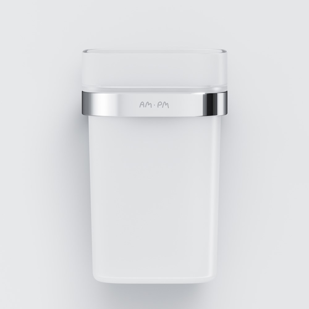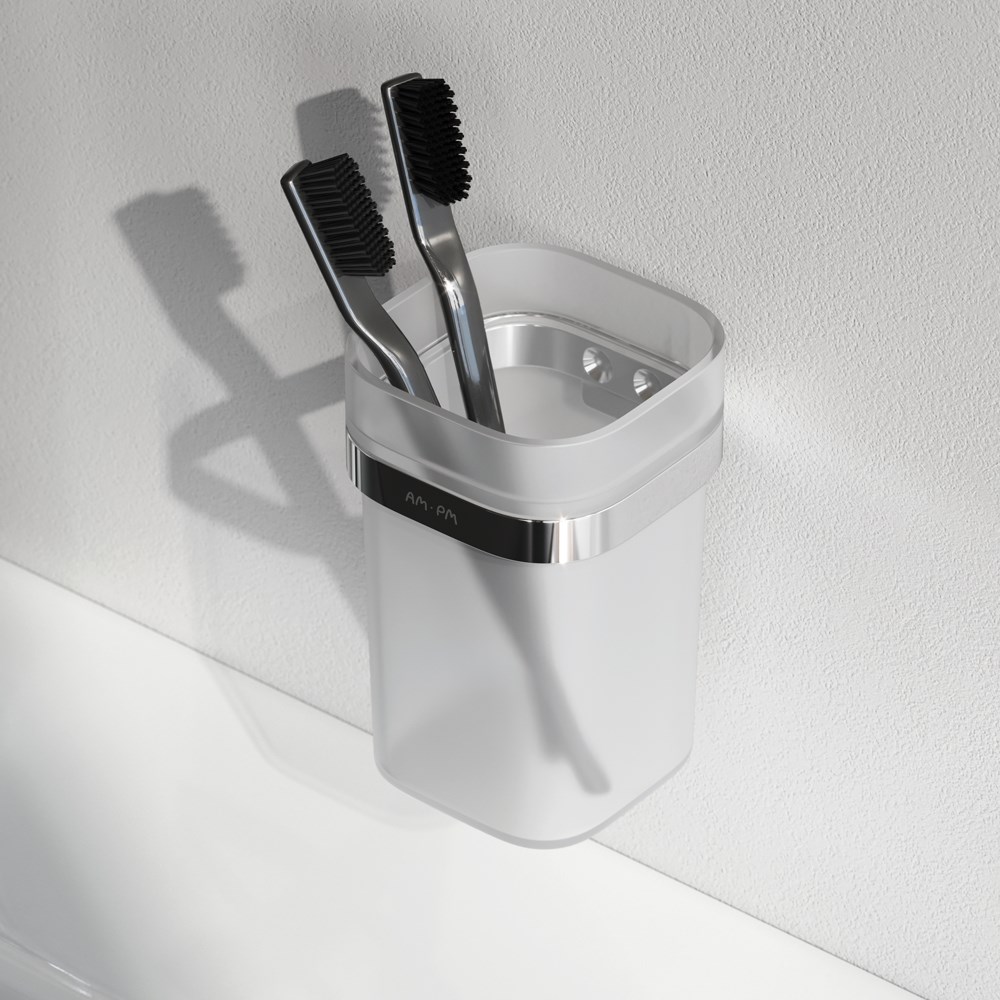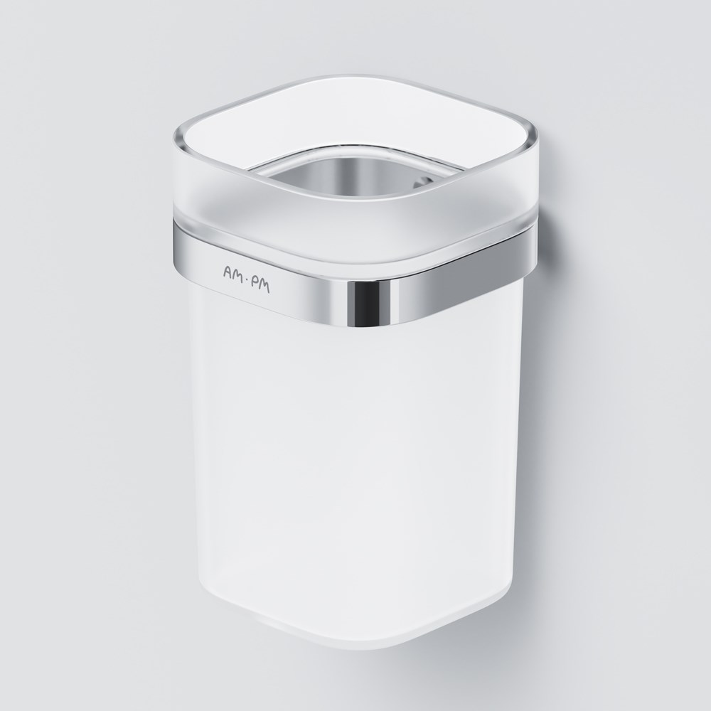 Am.Pm Func Стакан подвесной, стеклянный, цвет: хром глянцевый A8F34300 и другие сантехнические изделия бренда характеризует надежность, высокое качество и продолжительный срок службы. Изделие в стилистике минимализм впечатляюще будет смотреться в различных цветовых решениях помещения.