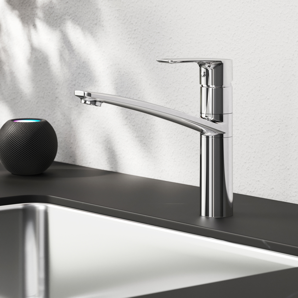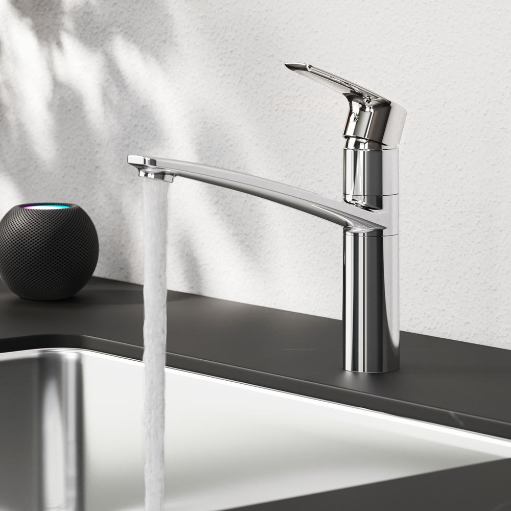 Am.Pm Gem Смеситель для кухни, высота излива 16 см, цвет: хром глянцевый F90A00000 и другие сантехнические изделия бренда характеризует надежность, высокое качество и продолжительный срок службы. Изделие в стилистике минимализм впечатляюще будет смотреться в различных цветовых решениях помещения.