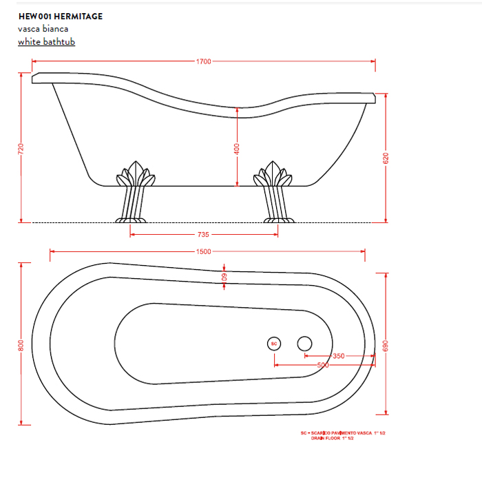 ArtCeram Hermitage Ванна акриловая отдельностоящая 170x80 см, цвет: glossy white/chrome HEW001 71