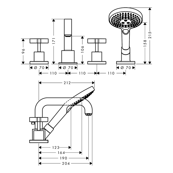 Axor Citterio Смеситель на борт ванны, с ручным душем, внешняя часть, цвет: нержавеющая сталь 39445800 и другие сантехнические изделия бренда характеризует надежность, высокое качество и продолжительный срок службы. Изделие в стилистике неоклассика впечатляюще будет смотреться в различных цветовых решениях помещения.
