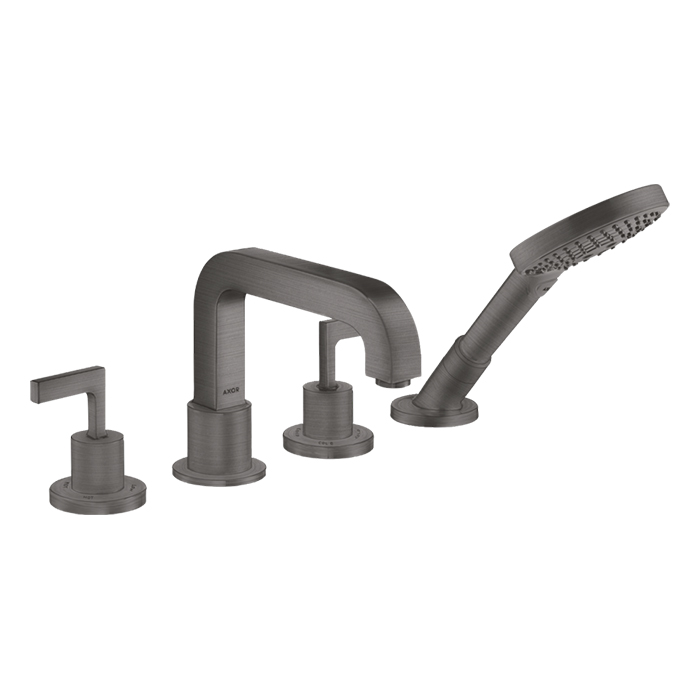 Axor Citterio Смеситель на борт ванны, с ручным душем, внешняя часть, цвет: шлифованный черный хром 39446340 и другие сантехнические изделия бренда характеризует надежность, высокое качество и продолжительный срок службы. Изделие в стилистике неоклассика впечатляюще будет смотреться в различных цветовых решениях помещения.