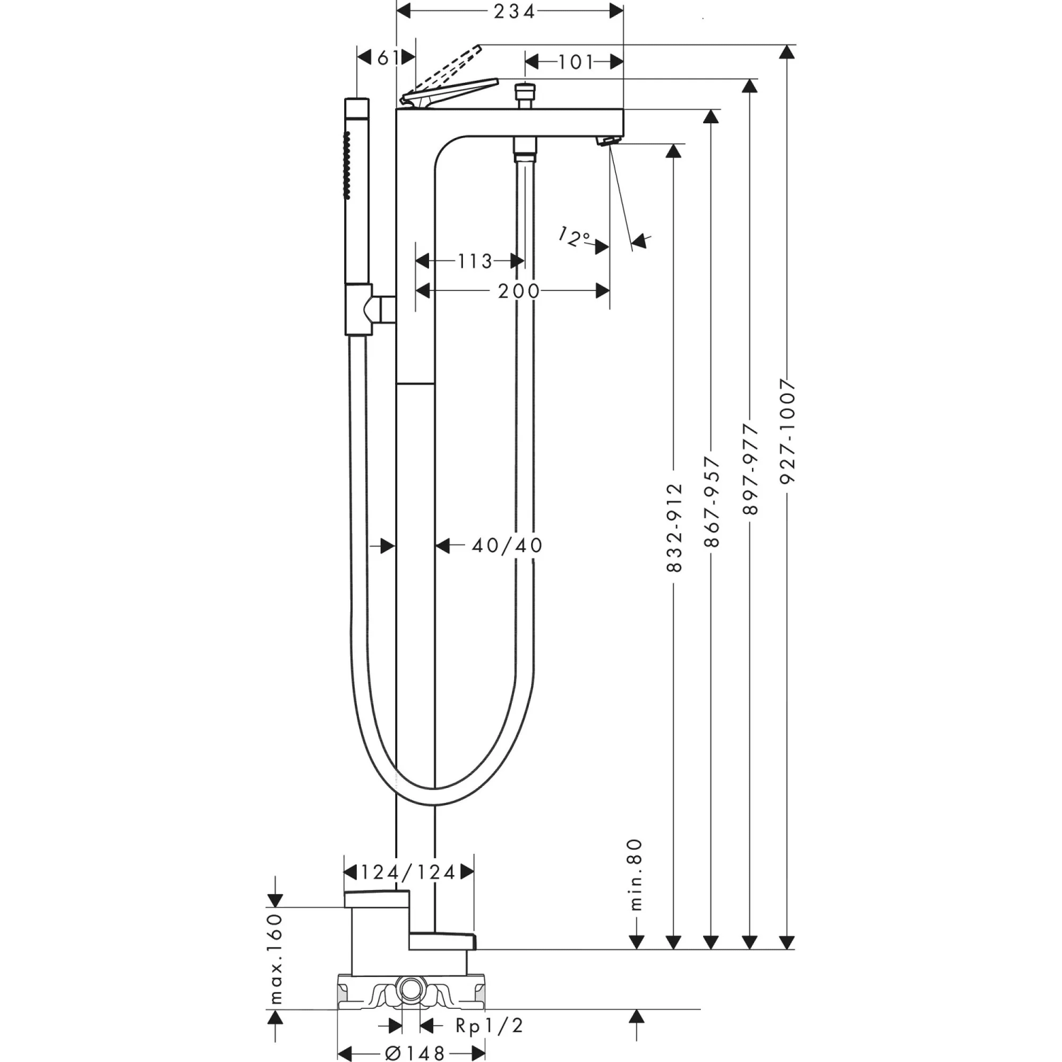 Axor Citterio Смеситель для ванны, напольный, однорычажный, с ручным душем "палочка",цвет: хром 39440000 и другие сантехнические изделия бренда характеризует надежность, высокое качество и продолжительный срок службы. Изделие в стилистике неоклассика впечатляюще будет смотреться в различных цветовых решениях помещения.