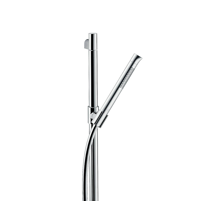 Axor Starck Organic Душевой гарнитур: лейка 2 вида струи, штанга 98 см, шланг 160 см, цвет: хром 12231000 и другие сантехнические изделия бренда характеризует надежность, высокое качество и продолжительный срок службы. Изделие в стилистике экостиль впечатляюще будет смотреться в различных цветовых решениях помещения.