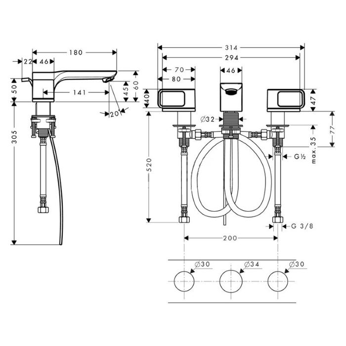 Axor Urquiola Смеситель для раковины двухвент. на 3 отв. с донным клап., цвет: хром 11041000 и другие сантехнические изделия бренда характеризует надежность, высокое качество и продолжительный срок службы. Изделие в стилистике неоклассика впечатляюще будет смотреться в различных цветовых решениях помещения.