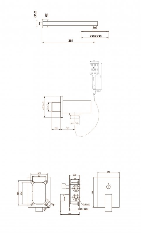 BelBagno Romano Душевой комплект встраиваемый: смеситель, ручной и верхний душ, цвет: хром глянцевый Rom-Dset-Crm и другие сантехнические изделия бренда характеризует надежность, высокое качество и продолжительный срок службы. Изделие в стилистике минимализм впечатляюще будет смотреться в различных цветовых решениях помещения.