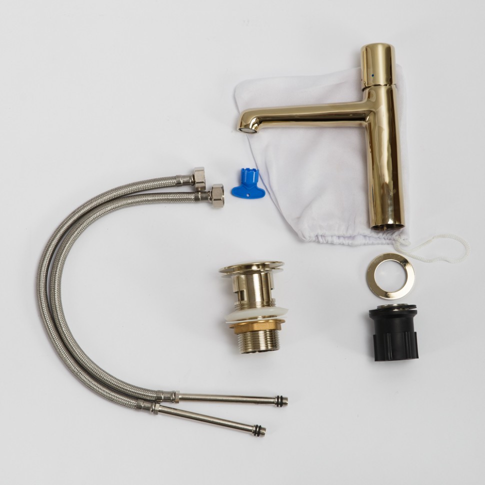 BelBagno Uno Смеситель для раковины, без д/к, длина излива 13,4 см, цвет: золото глянцевое UNO-LVM-ORO и другие сантехнические изделия бренда характеризует надежность, высокое качество и продолжительный срок службы. Изделие в стилистике минимализм впечатляюще будет смотреться в различных цветовых решениях помещения.