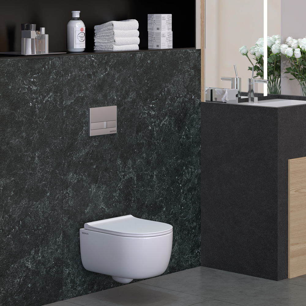 Berges Ego Унитаз подвесной Rimless 49х32,5h, цвет: белый 082111 и другие сантехнические изделия бренда характеризует надежность, высокое качество и продолжительный срок службы. Изделие в стилистике минимализм впечатляюще будет смотреться в различных цветовых решениях помещения.