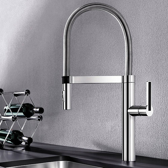 Blanco Culina-S Смеситель для кухни, выдвижн. излив, цвет: хром 517597 и другие сантехнические изделия бренда характеризует надежность, высокое качество и продолжительный срок службы. Изделие в стилистике hi-tech впечатляюще будет смотреться в различных цветовых решениях помещения.