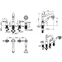 Boheme Camelia Spirale Смеситель на борт ванны, на 4 отверстия, с ручным душем, цвет: gold 395-Camelia и другие сантехнические изделия бренда характеризует надежность, высокое качество и продолжительный срок службы. Изделие в стилистике прованс впечатляюще будет смотреться в различных цветовых решениях помещения.
