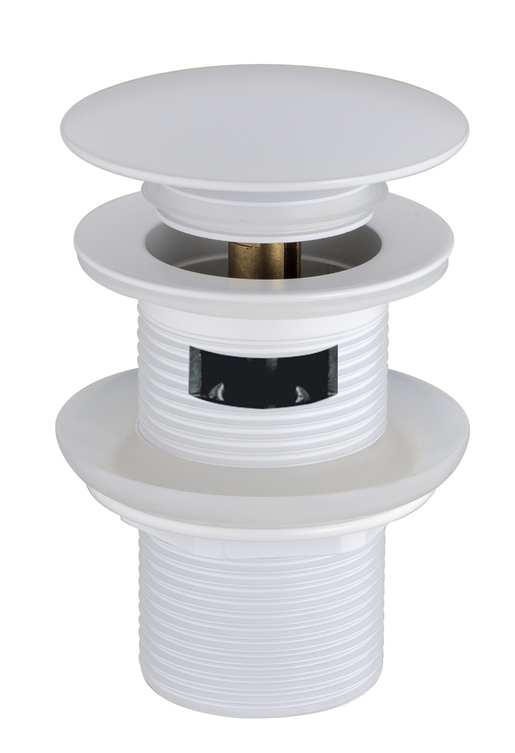 Boheme Донный клапан для раковины, автомат Click-Clack, с переливом, цвет: matt white 612/2-MW и другие сантехнические изделия бренда характеризует надежность, высокое качество и продолжительный срок службы. Изделие в стилистике минимализм впечатляюще будет смотреться в различных цветовых решениях помещения.