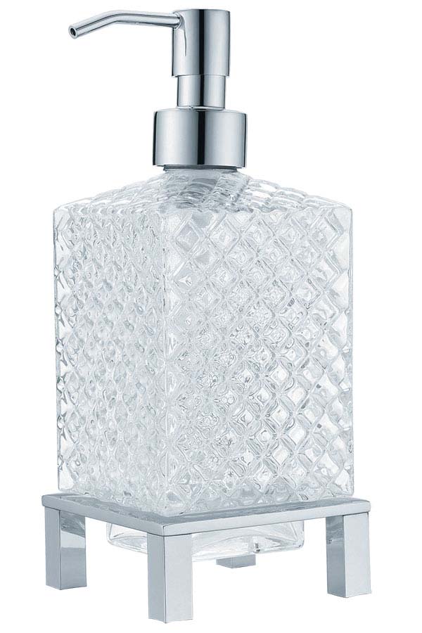 Boheme Дозатор для жидкого мыла, настольный, стеклянная колба, цвет: chrome 10226 и другие сантехнические изделия бренда характеризует надежность, высокое качество и продолжительный срок службы. Изделие в стилистике арт-деко впечатляюще будет смотреться в различных цветовых решениях помещения.