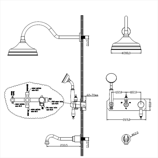 Boheme Imperiale Ripresa Душевой комплект встраиваемый - смеситель, душ, 3 потребителя, цвет: gold 328 и другие сантехнические изделия бренда характеризует надежность, высокое качество и продолжительный срок службы. Изделие в стилистике английская классика впечатляюще будет смотреться в различных цветовых решениях помещения.