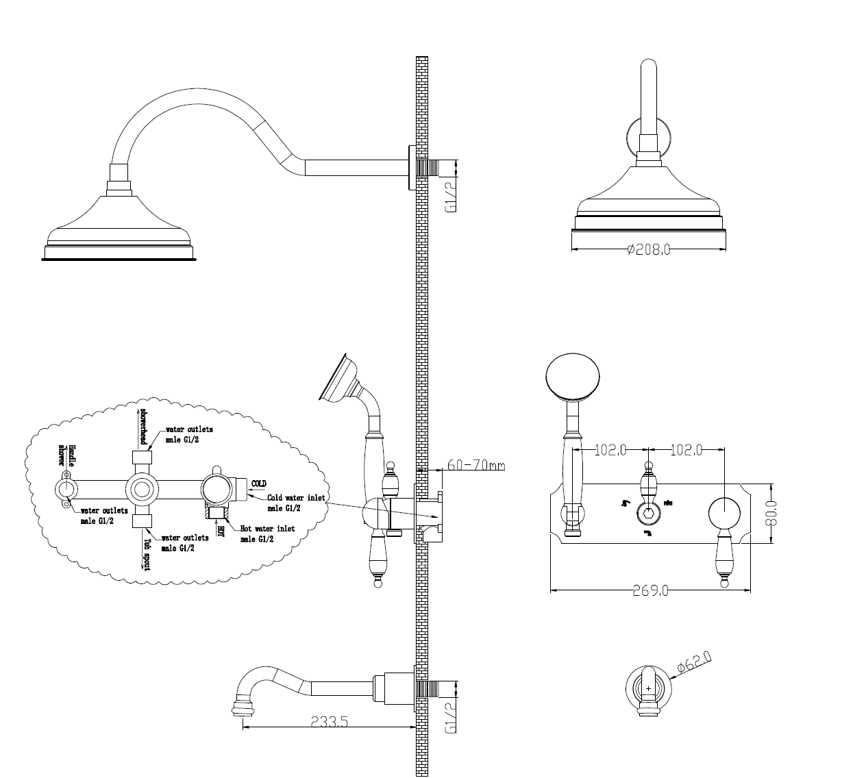 Boheme Medici Душевой комплект встраиваемый - смеситель, душ, 3 потребителя, цвет: bronze 308 и другие сантехнические изделия бренда характеризует надежность, высокое качество и продолжительный срок службы. Изделие в стилистике прованс впечатляюще будет смотреться в различных цветовых решениях помещения.