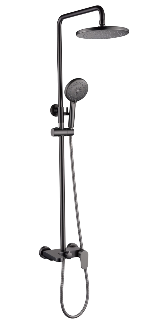 Boheme Spectre Душевая стойка: смеситель, ручной душ 5 видов струи, верхний душ, цвет: gun metall 458-Gm и другие сантехнические изделия бренда характеризует надежность, высокое качество и продолжительный срок службы. Изделие в стилистике минимализм впечатляюще будет смотреться в различных цветовых решениях помещения.