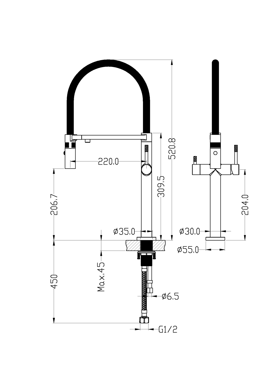 Boheme Uno Гигиенический душ со шлангом 150 см, внутренней частью и держателем, цвет: copper brushed 467-CB