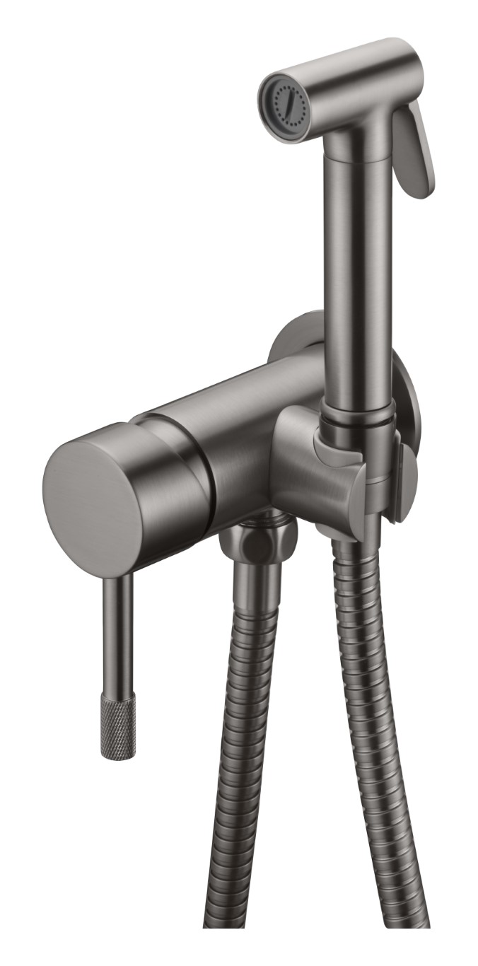 Boheme Uno Гигиенический душ со смесителем и встраиваемой частью, цвет: gun metall 467-GM и другие сантехнические изделия бренда характеризует надежность, высокое качество и продолжительный срок службы. Изделие в стилистике лофт впечатляюще будет смотреться в различных цветовых решениях помещения.