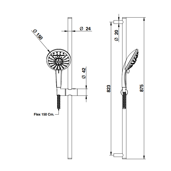 Bongio Душевой гарнитур: штанга, шланг, ручной душ 5 режимов, цвет: хром 14876CRPR и другие сантехнические изделия бренда характеризует надежность, высокое качество и продолжительный срок службы. Изделие в стилистике неоклассика впечатляюще будет смотреться в различных цветовых решениях помещения.