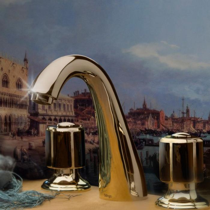 Bongio Fleur Noir Смеситель для раковины, на 3 отв., цвет: золото/черный фарфор 12501OR00 и другие сантехнические изделия бренда характеризует надежность, высокое качество и продолжительный срок службы. Изделие в стилистике арт-деко впечатляюще будет смотреться в различных цветовых решениях помещения.