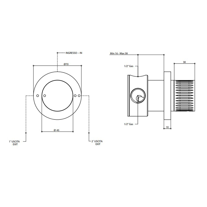 Bongio Time 2020 Переключающий вентиль на 2 источника, нержавеющая сталь 70525ASEU и другие сантехнические изделия бренда характеризует надежность, высокое качество и продолжительный срок службы. Изделие в стилистике лофт впечатляюще будет смотреться в различных цветовых решениях помещения.