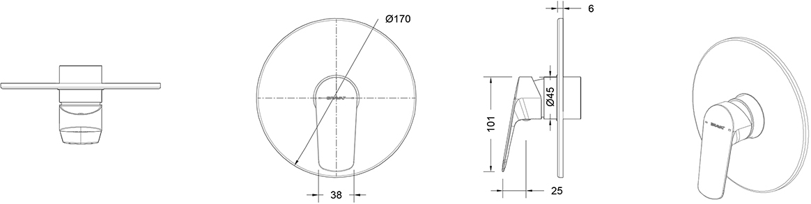 Bravat Rhein Смеситель для душа, 17х5,6хh17, цвет: хром PB8429564CP-ENG и другие сантехнические изделия бренда характеризует надежность, высокое качество и продолжительный срок службы. Изделие в стилистике неоклассика впечатляюще будет смотреться в различных цветовых решениях помещения.