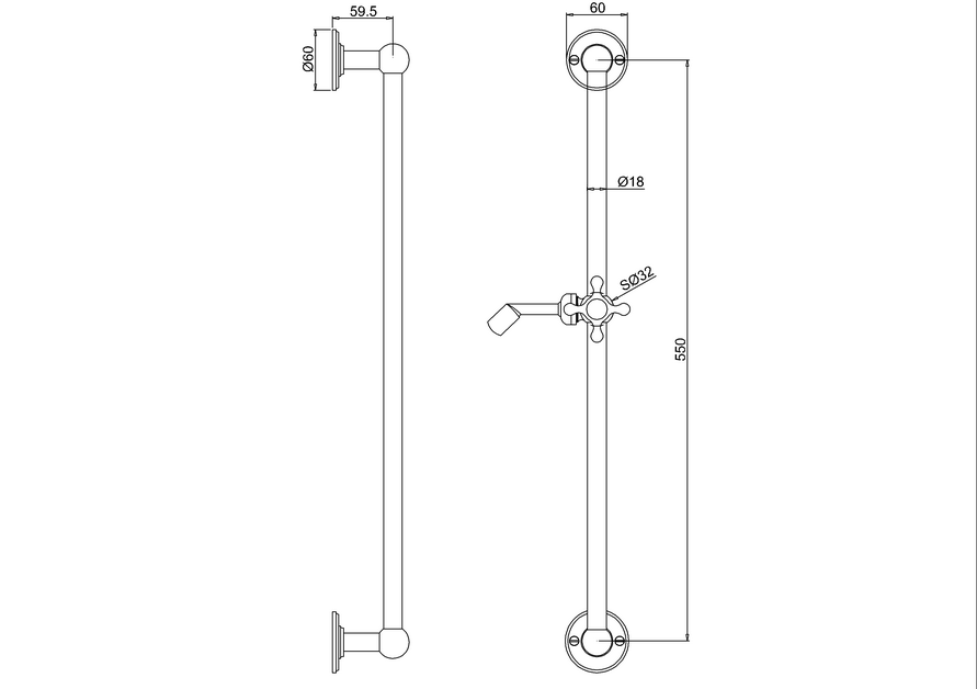 Burlington Arcade Душевая штанга 55 см с держателем для лейки, цвет: хром глянцевый V33 и другие сантехнические изделия бренда характеризует надежность, высокое качество и продолжительный срок службы. Изделие в стилистике английская классика впечатляюще будет смотреться в различных цветовых решениях помещения.