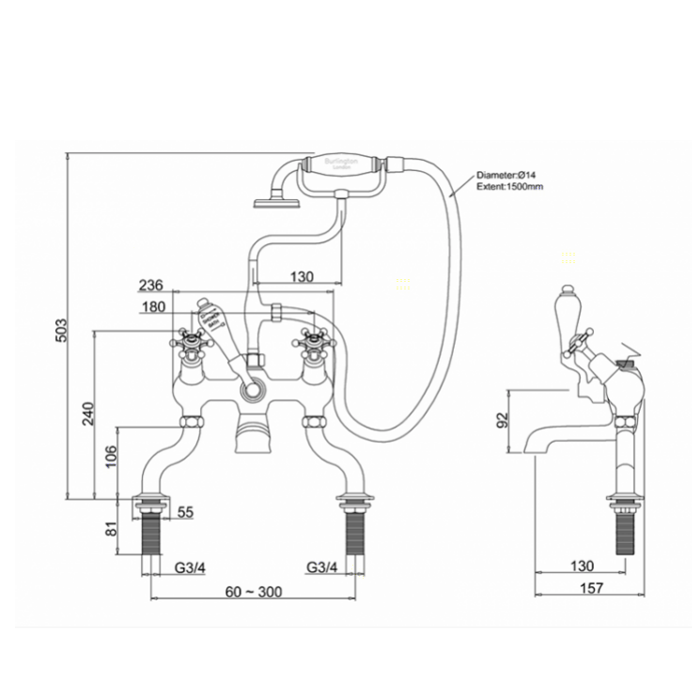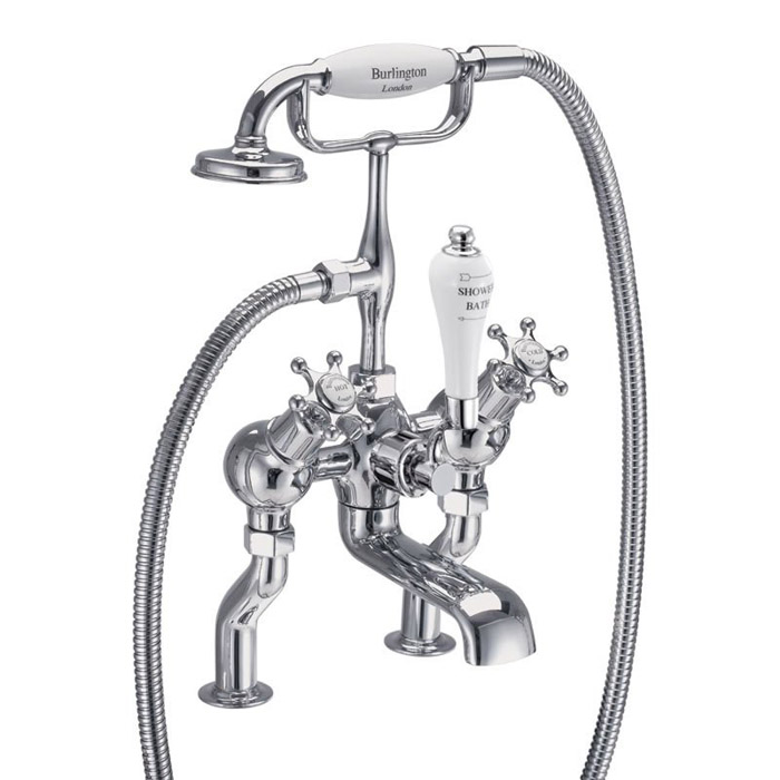 Burlington Birkenhead Смеситель на борт ванны, излив 13 см и ручным душем, цвет: хром/белый глянец BI19-QT и другие сантехнические изделия бренда характеризует надежность, высокое качество и продолжительный срок службы. Изделие в стилистике английская классика впечатляюще будет смотреться в различных цветовых решениях помещения.