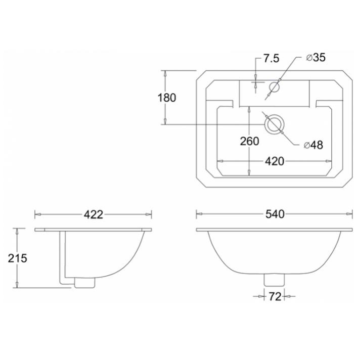 Burlington Classic Раковина встраиваемая сверху 54х42 см, с переливом, цвет: белый глянцевый B13 1TH и другие сантехнические изделия бренда характеризует надежность, высокое качество и продолжительный срок службы. Изделие в стилистике английская классика впечатляюще будет смотреться в различных цветовых решениях помещения.