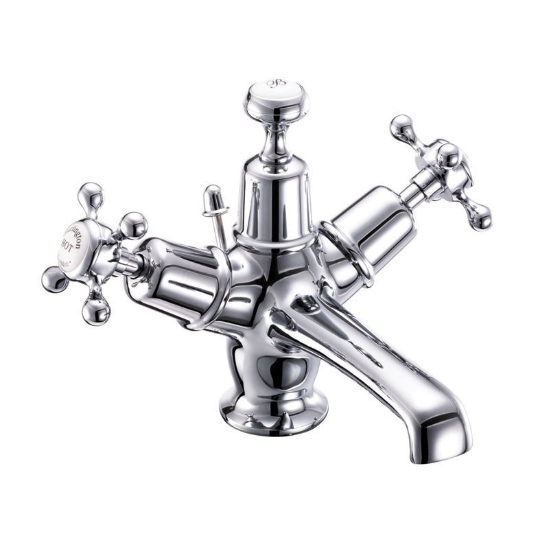 Burlington Classic Смеситель для раковины на 1 отверстие, излив 4,5h см, цвет: хром/белый глянец CL4-QT и другие сантехнические изделия бренда характеризует надежность, высокое качество и продолжительный срок службы. Изделие в стилистике английская классика впечатляюще будет смотреться в различных цветовых решениях помещения.