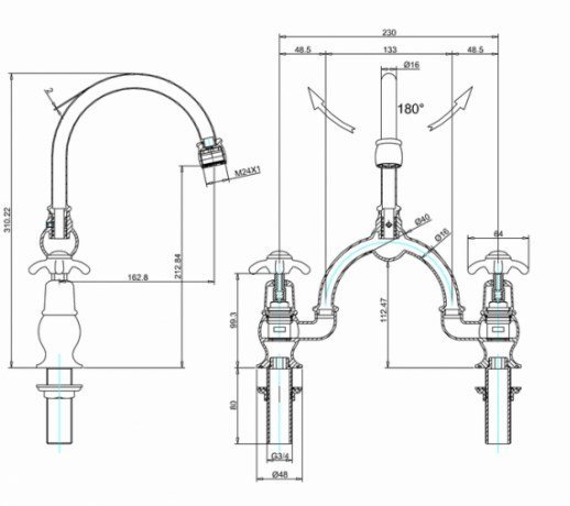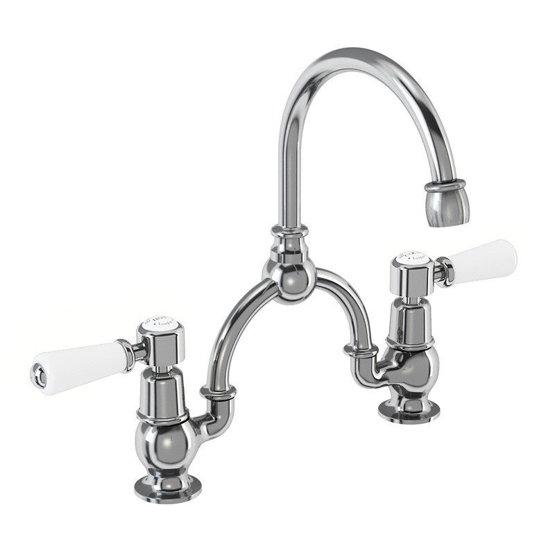 Burlington Classic Смеситель для раковины на 2 отверстия, излив 21h см, цвет: хром/белый глянец AN28-QT и другие сантехнические изделия бренда характеризует надежность, высокое качество и продолжительный срок службы. Изделие в стилистике английская классика впечатляюще будет смотреться в различных цветовых решениях помещения.