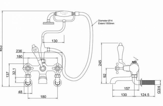 Burlington Classic Набор труб для среднего бачка: труба слива, ручка, кронштейны, цвет: хром глянец T33 CHR