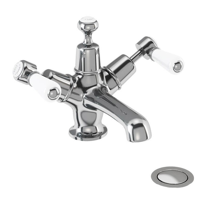 Burlington Kensington Смеситель для раковины на 1 отверстие, излив 4,5h см, цвет: хром/белый глянец KE6-QT и другие сантехнические изделия бренда характеризует надежность, высокое качество и продолжительный срок службы. Изделие в стилистике английская классика впечатляюще будет смотреться в различных цветовых решениях помещения.
