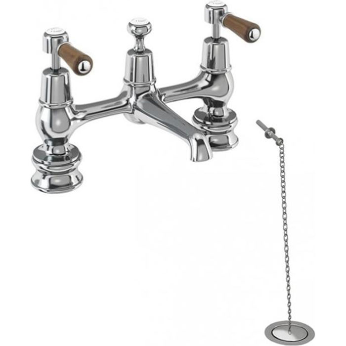 Burlington Regent Смеситель для раковины на 2 отв, излив 2,2h см, с пробкой, цвет: хром/орех глянец KER10-QT WAL и другие сантехнические изделия бренда характеризует надежность, высокое качество и продолжительный срок службы. Изделие в стилистике английская классика впечатляюще будет смотреться в различных цветовых решениях помещения.
