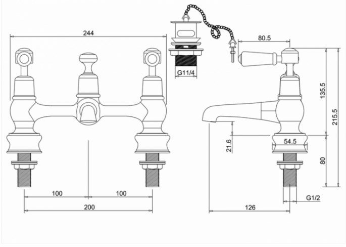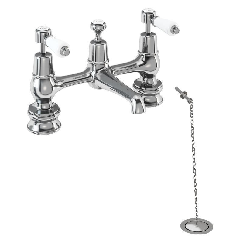 Burlington Regent Смеситель для раковины на 2 отв, излив 2,2h см, с пробкой, цвет: хром/белый глянец KER10-QT и другие сантехнические изделия бренда характеризует надежность, высокое качество и продолжительный срок службы. Изделие в стилистике английская классика впечатляюще будет смотреться в различных цветовых решениях помещения.