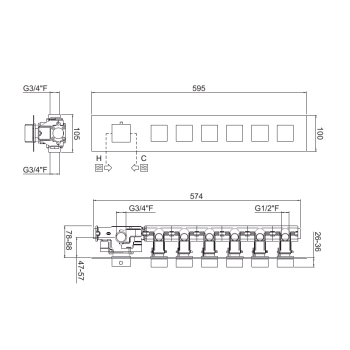 Carimali IlQuadro Внешняя часть гориз. смесителя с 6-ю независ. выходами, цвет хром 21060EST/O-CR и другие сантехнические изделия бренда характеризует надежность, высокое качество и продолжительный срок службы. Изделие в стилистике лофт впечатляюще будет смотреться в различных цветовых решениях помещения.