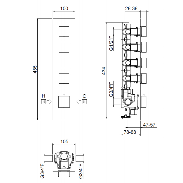 Carimali IlQuadro Внешняя часть верт. смесителя с 4-ю независ. выходами, цвет хром 21040EST-CR и другие сантехнические изделия бренда характеризует надежность, высокое качество и продолжительный срок службы. Изделие в стилистике лофт впечатляюще будет смотреться в различных цветовых решениях помещения.