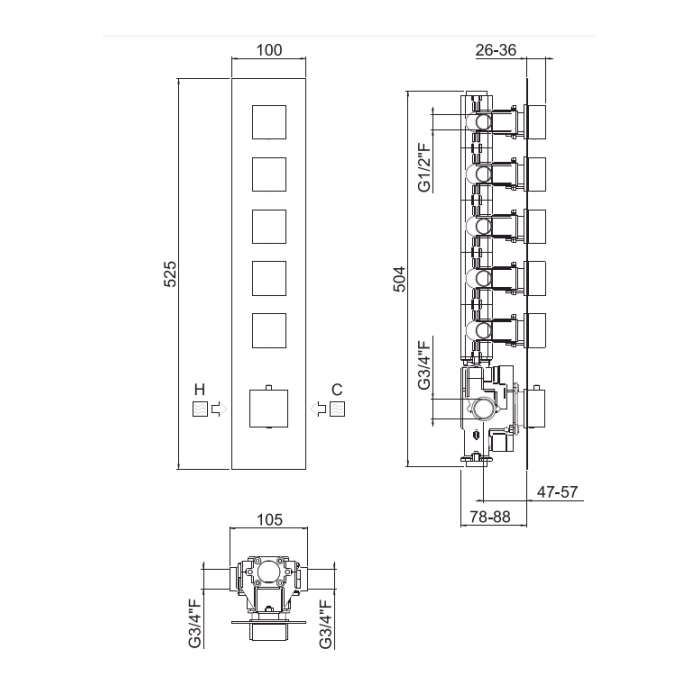 Carimali IlQuadro Внешняя часть верт. смесителя с 5-ю независ. выходами, цвет хром 21050EST-CR и другие сантехнические изделия бренда характеризует надежность, высокое качество и продолжительный срок службы. Изделие в стилистике лофт впечатляюще будет смотреться в различных цветовых решениях помещения.