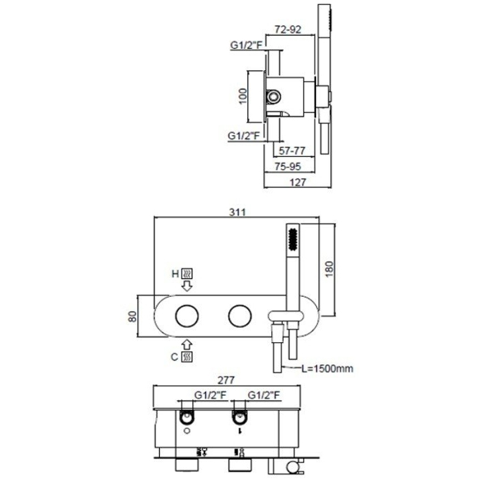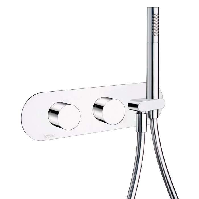 Carimali IlTondo Смеситель для душа термостат. 3 потреб., встр., лейка, держатель, шланг, цвет:хром 21938EST/A-CR и другие сантехнические изделия бренда характеризует надежность, высокое качество и продолжительный срок службы. Изделие в стилистике минимализм впечатляюще будет смотреться в различных цветовых решениях помещения.