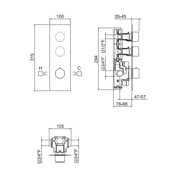 Carimali IlTondo Внешняя часть верт. двухстороннего горизонт. термост. смес. цвет хром 21029EST-CR и другие сантехнические изделия бренда характеризует надежность, высокое качество и продолжительный срок службы. Изделие в стилистике неоклассика впечатляюще будет смотреться в различных цветовых решениях помещения.
