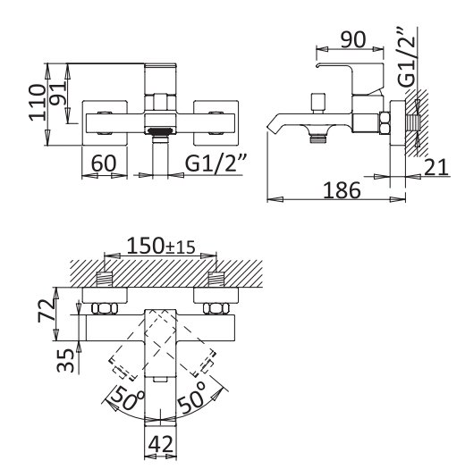 Cezares Porta Смеситель для душа встраиваемый, на 1 потребитель, с внутренней частью, цвет: хром PORTA-DIM-01