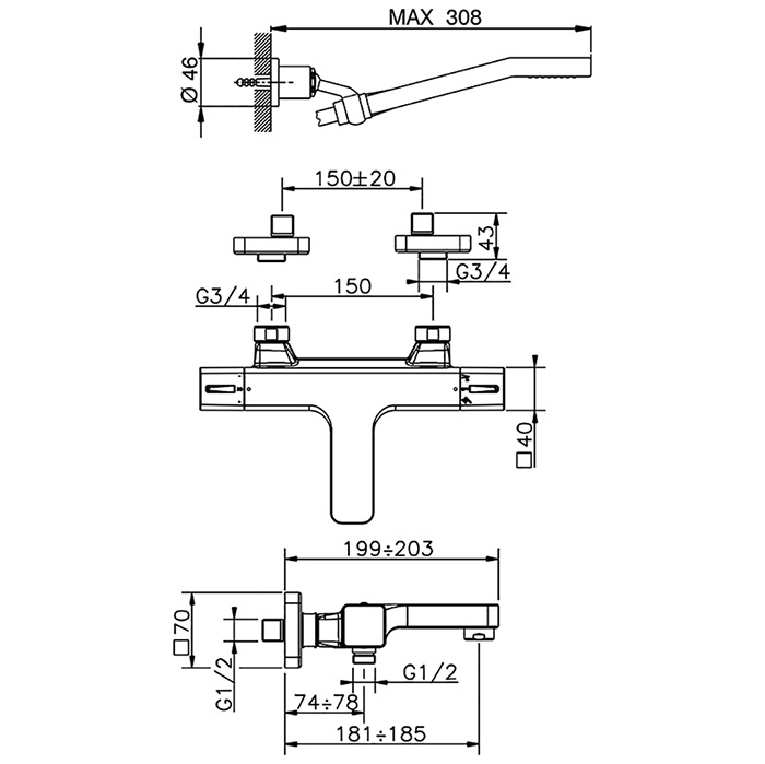 Cisal Cubic Смеситель термостатический настенный для ванны с ручной лейкой, цвет: Chrome CUD2102021 и другие сантехнические изделия бренда характеризует надежность, высокое качество и продолжительный срок службы. Изделие в стилистике неоклассика впечатляюще будет смотреться в различных цветовых решениях помещения.
